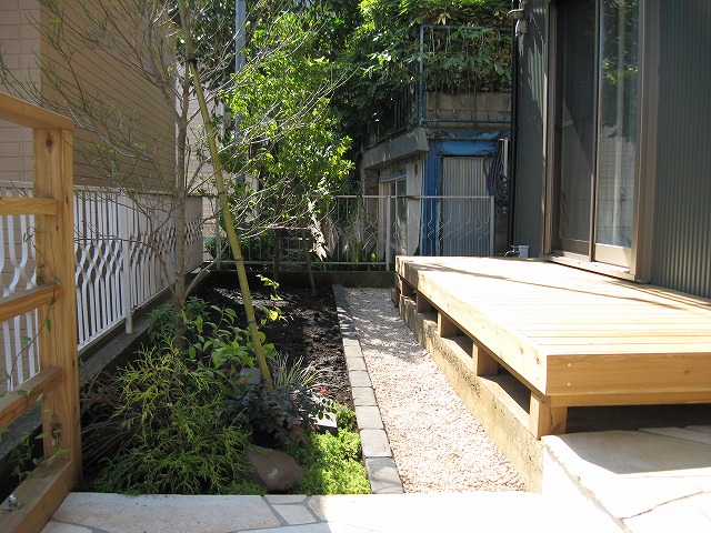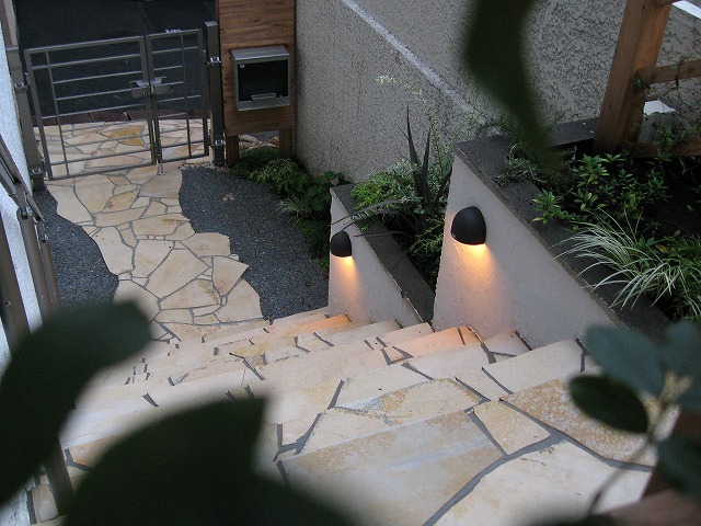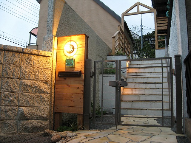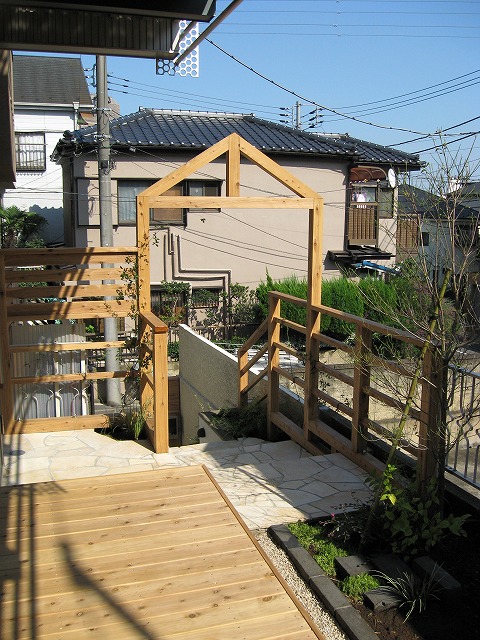木製アーチのあるリフォームエクステリア 夕方にはライトアップが美しい外観に生まれ変わりました 敷地のてっぺんより工事前、コンクリートの階段が途中まで、 そのまま生かせる部分だけ残し、石貼します サイプレスのアーチにバラを絡ませ、個性的なアプローチに 道路から入る下部分、狭小地で暗い印象が 白を基調とした自然素材で明るくなりました 上面を眺めながら入るエントランスは気持ちいです 登りきった上部は植栽を楽しむ花壇と縁台風デッキ 急で狭い階段が 足元灯と手すりもついて、雰囲気も素敵に 夕方にはライトアップが美しい外観に生まれ変わりました Previous Next 施工種別アプローチガーデン施工シンボルツリー関連材料ひのきサイプレス乱形石マリンランプ表札物置関連キーワード施工エリア東京都板橋区大きさ(m,m2)施工日数30日概算費用 気候条件が悪い中での工事で、職人さんは大変だったと思いますが、いつも気持ちよく仕事をしてくださり感謝しています。 仕上がりは、ほぼ満足していますが、お盆以外にも途中休止が多く、思ったより日数が掛かった事と、打ち合わせ事項が職人さんに伝わっていなかった、以下の点が残念でした。 1.将来の物置設置を考慮した植栽配置。2.壁の仕上げ模様の違い。3.楽しみにしていた匍匐性ローズマリーが…ない? どれも微々たることですが、せっかく良い業者さんに巡り合えた!と嬉しく思っていますので、大満足の120点を付けたかったところですが、満足度100点です。 沢山のコメントを頂き、ありがとうございます。打合せの内容が職人さんに 充分伝達できなかった点、申し訳ございませんでした。 ・悪天候が続く中、着工予定の調整がスムーズにいかず、当初の予定を大幅に 過ぎてしまいました。 ・打合せ事項の伝達について、物置設置予定部分の件、塗り壁の模様の確認、 ローズマリーの植込希望についていずれも私の伝達が不十分でした。 申し訳ございません。 建築設計士様のデザインハウスを引き立てる、リフォームエクステリア 完成しました。ありがとうございます。